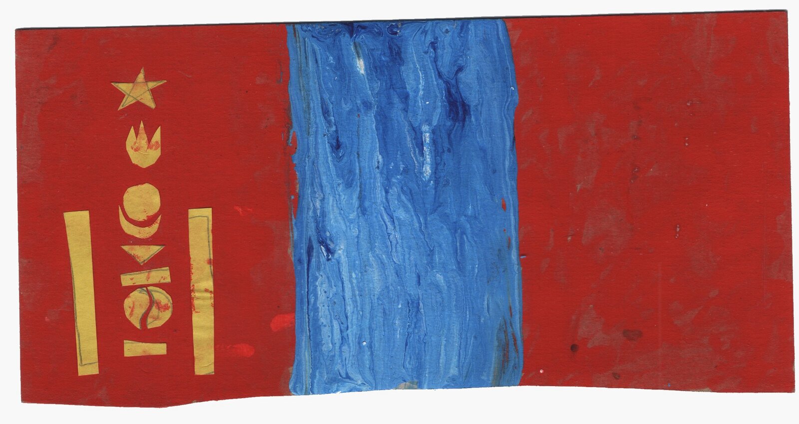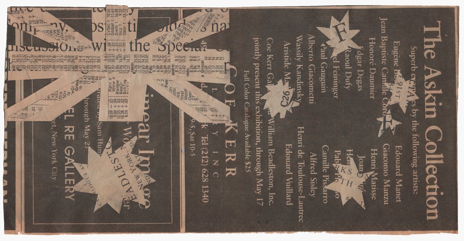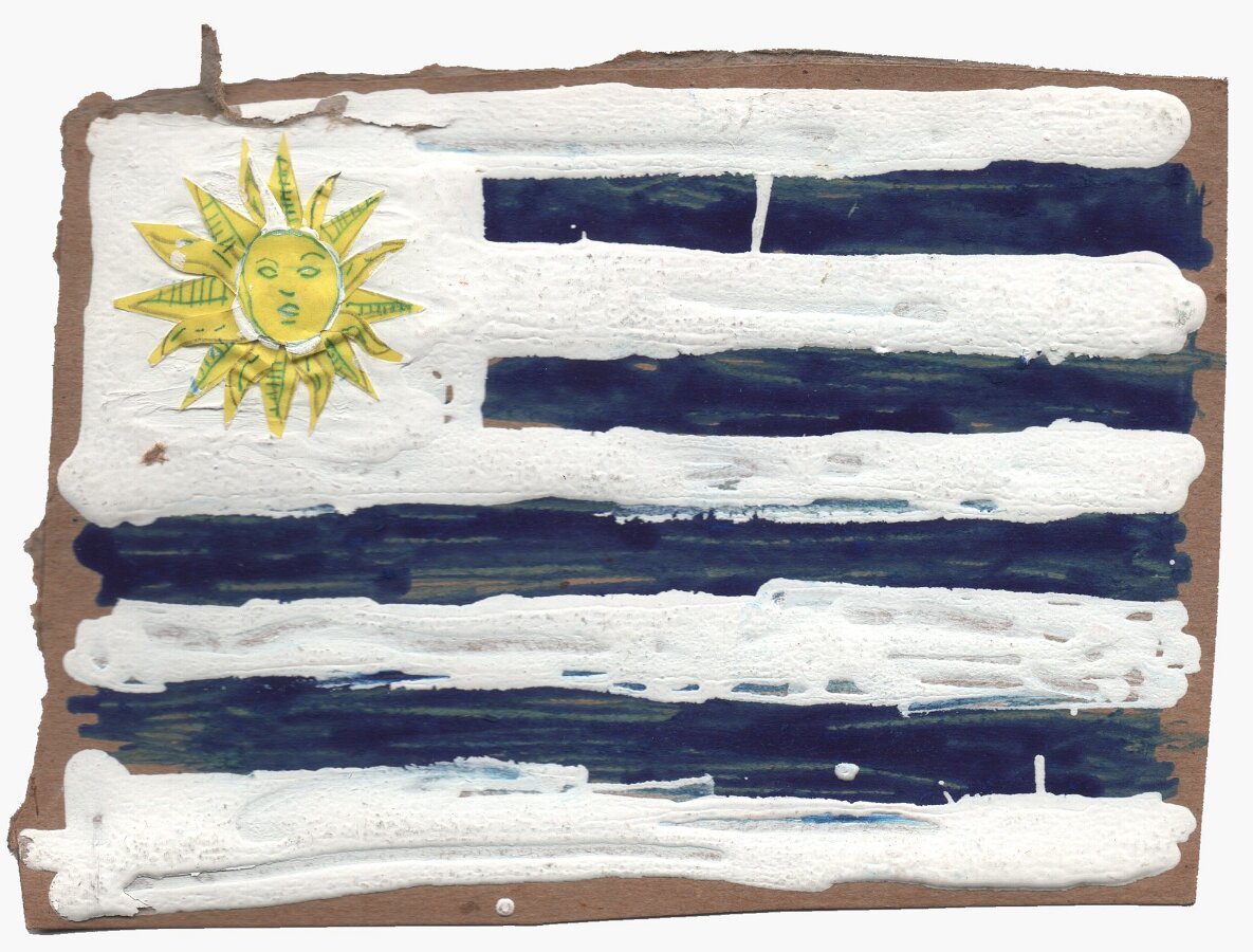 Frayed rope, cardboard strip, newspaper and paint on cardboard