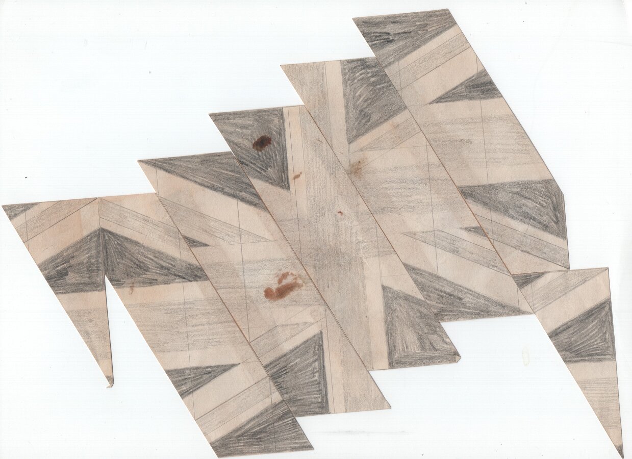 Cardstock and paint on cardboard. In the style of Charles Demuth ("I Saw the Figure 5 in Gold")